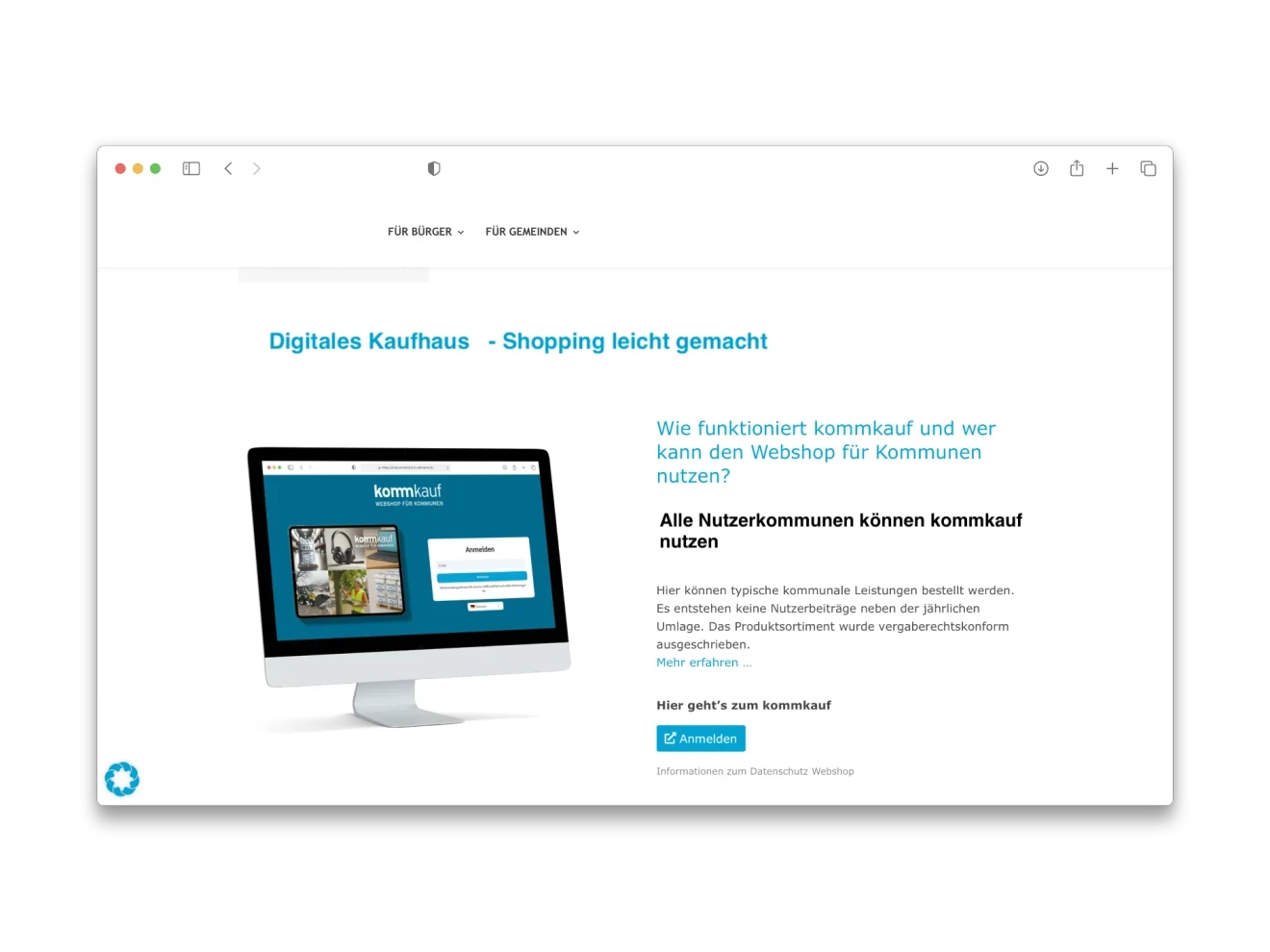 Mit dem digitalen, kommunalen Kaufhaus setzen wir unseren ersten großen Auftrag für einen öffentlichen Auftraggeber um und zeigen, wie moderne, digitale Lösungen die Beschaffung in Kommunen und öffentlichen Einrichtungen effizienter und einfacher gestalten können.